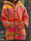 Women's Vintage Abstract Geometry Art Print Casual Fleece Coat