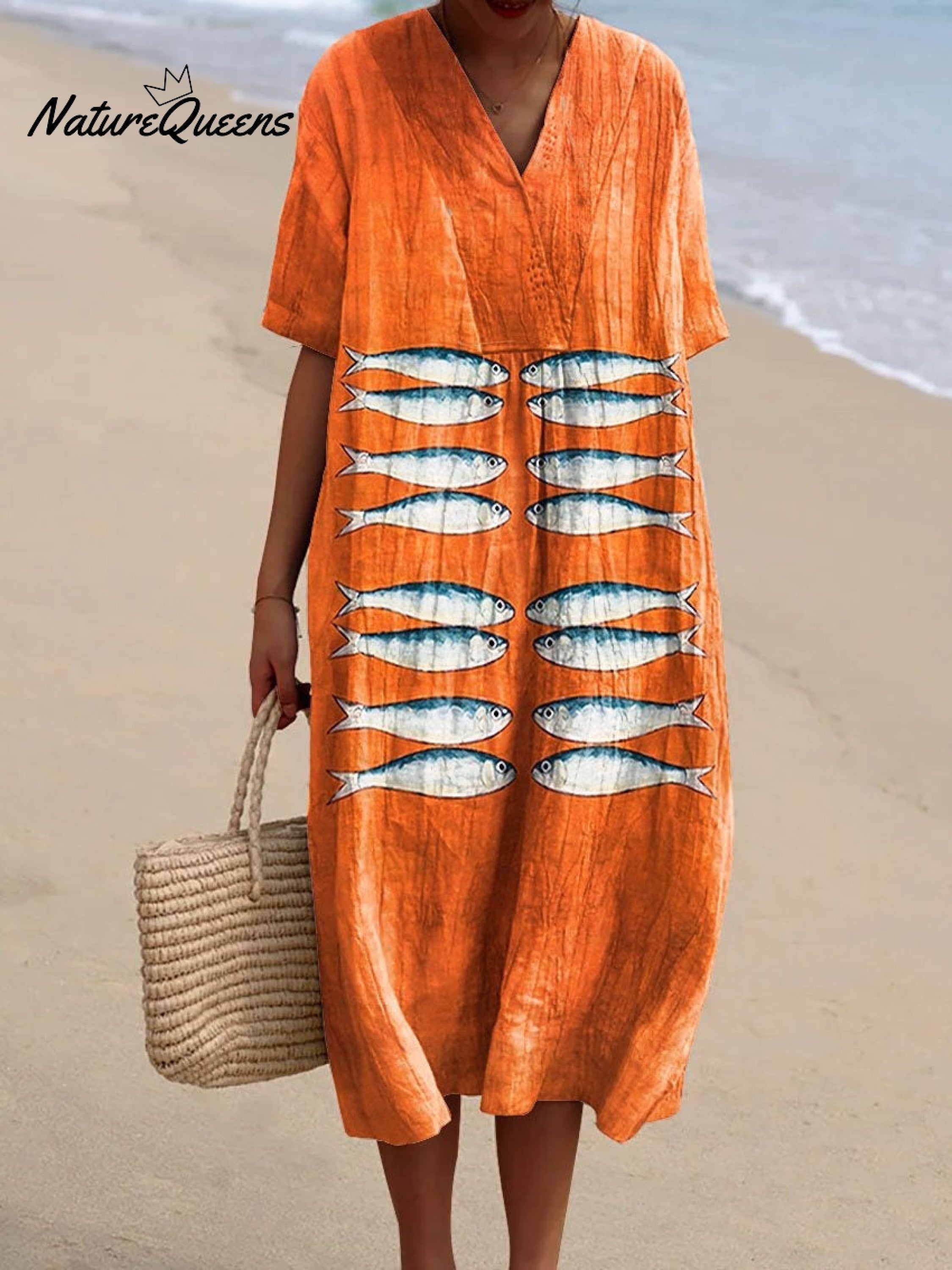 Women's Vintage Fish Art Print Casual Cotton And Linen ShirtWomen's Vintage Fish Art Print Casual Cotton And Linen Shirt