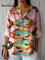 Women's Vintage Fish Art Print Casual Cotton Linen Shirt