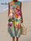 Women's Vintage FloralArt Print Sleeveless Cotton Pocket Wrap Dress