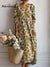 Women's Vintage Flower Art Print Linen Pocket Dress