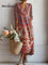 Women's Vintage Flower Art Print Linen Pocket Tunic Dress