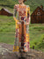 Women's Vintage Flower Art Print Long-sleeved Dress