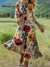 Women's Vintage Flower Art Print Long-sleeved Dress