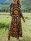 Women's Vintage Flower Art Printed Long-sleeved Casual Dress