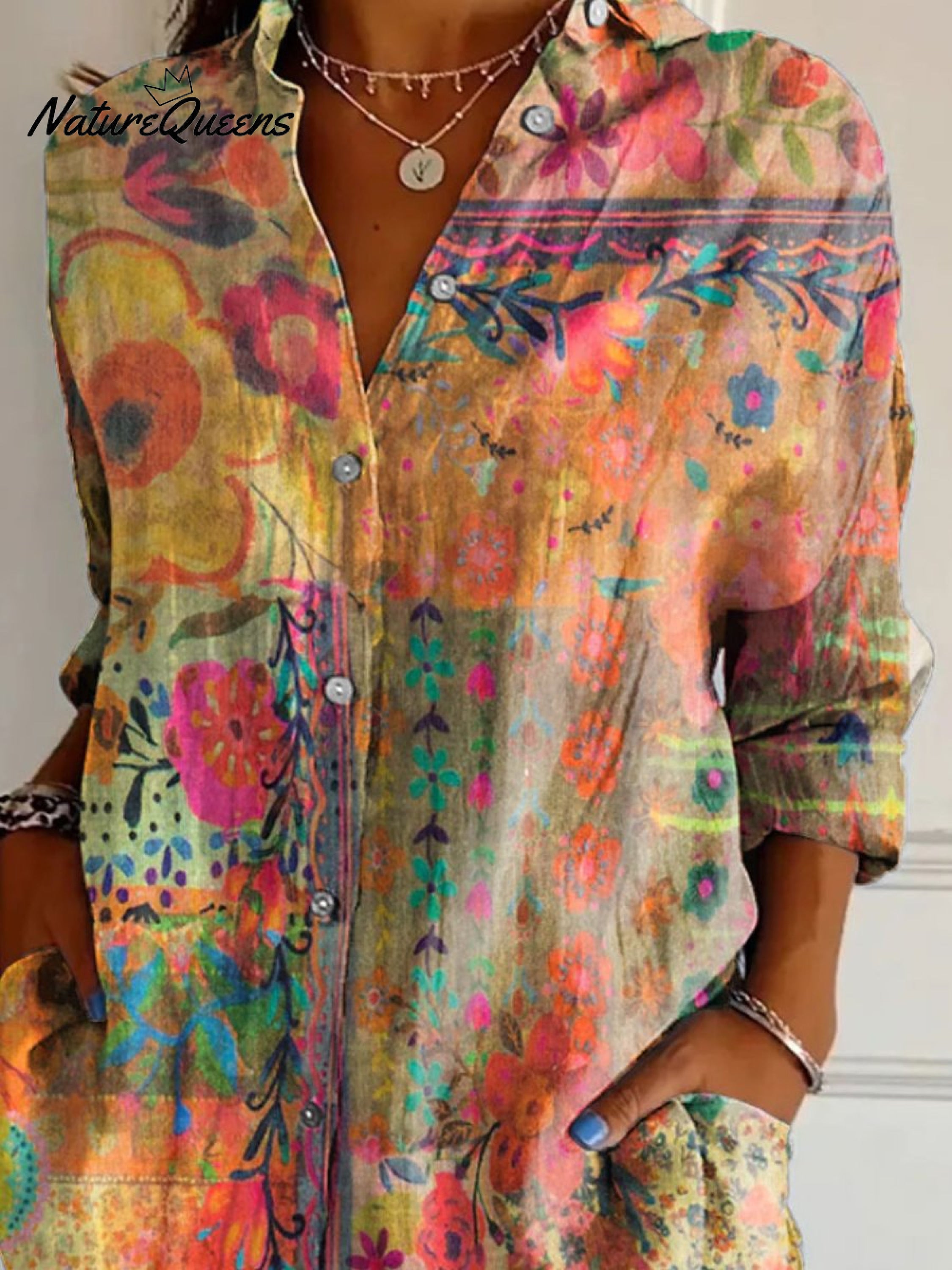 Women's Vintage Flower Print Casual Cotton ShirtWomen's Vintage Flower Print Casual Cotton Shirt