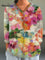 Women's Vintage Flowers Art Print Casual Cotton And Linen 3/4 Sleeve Shirt