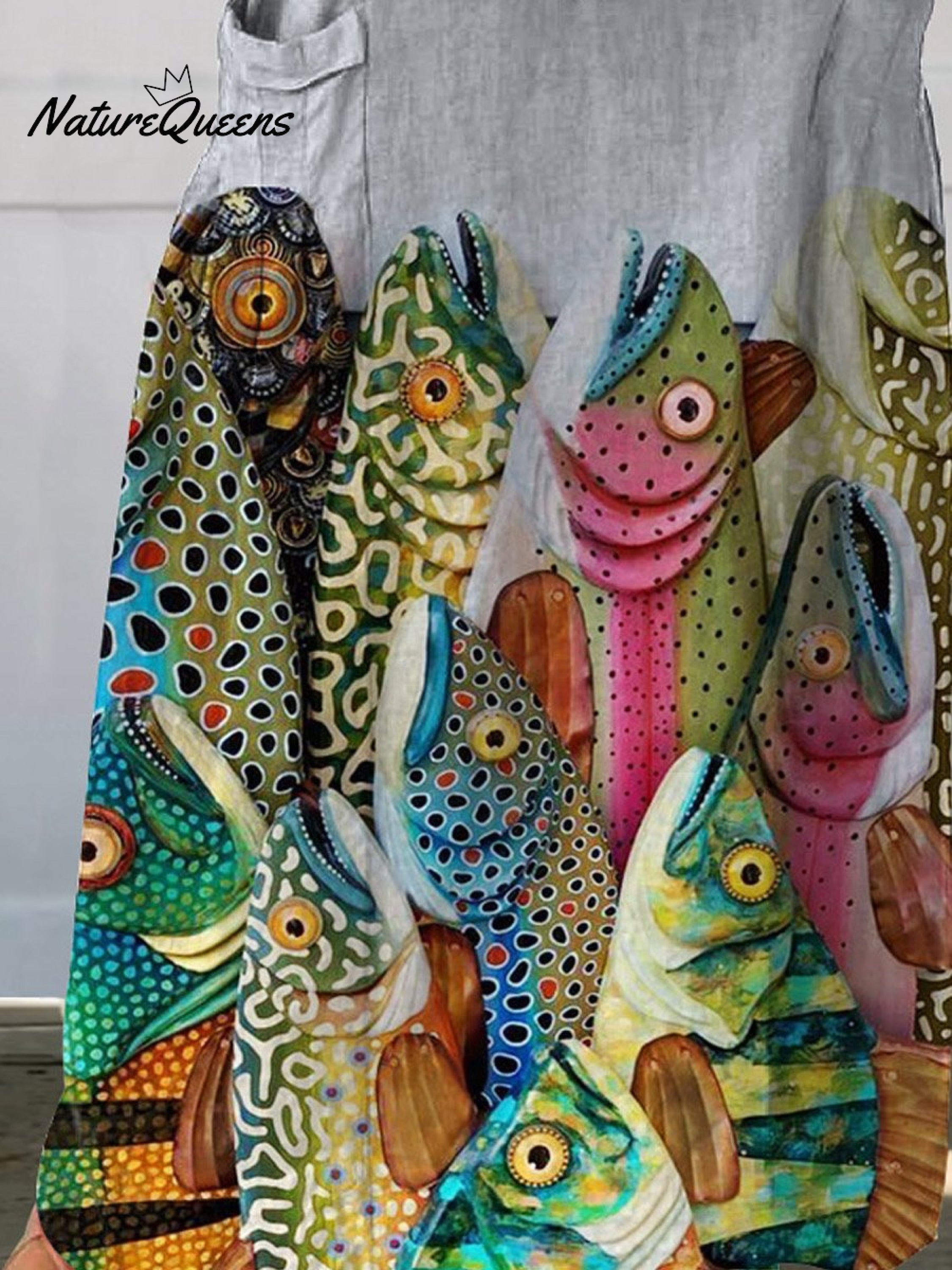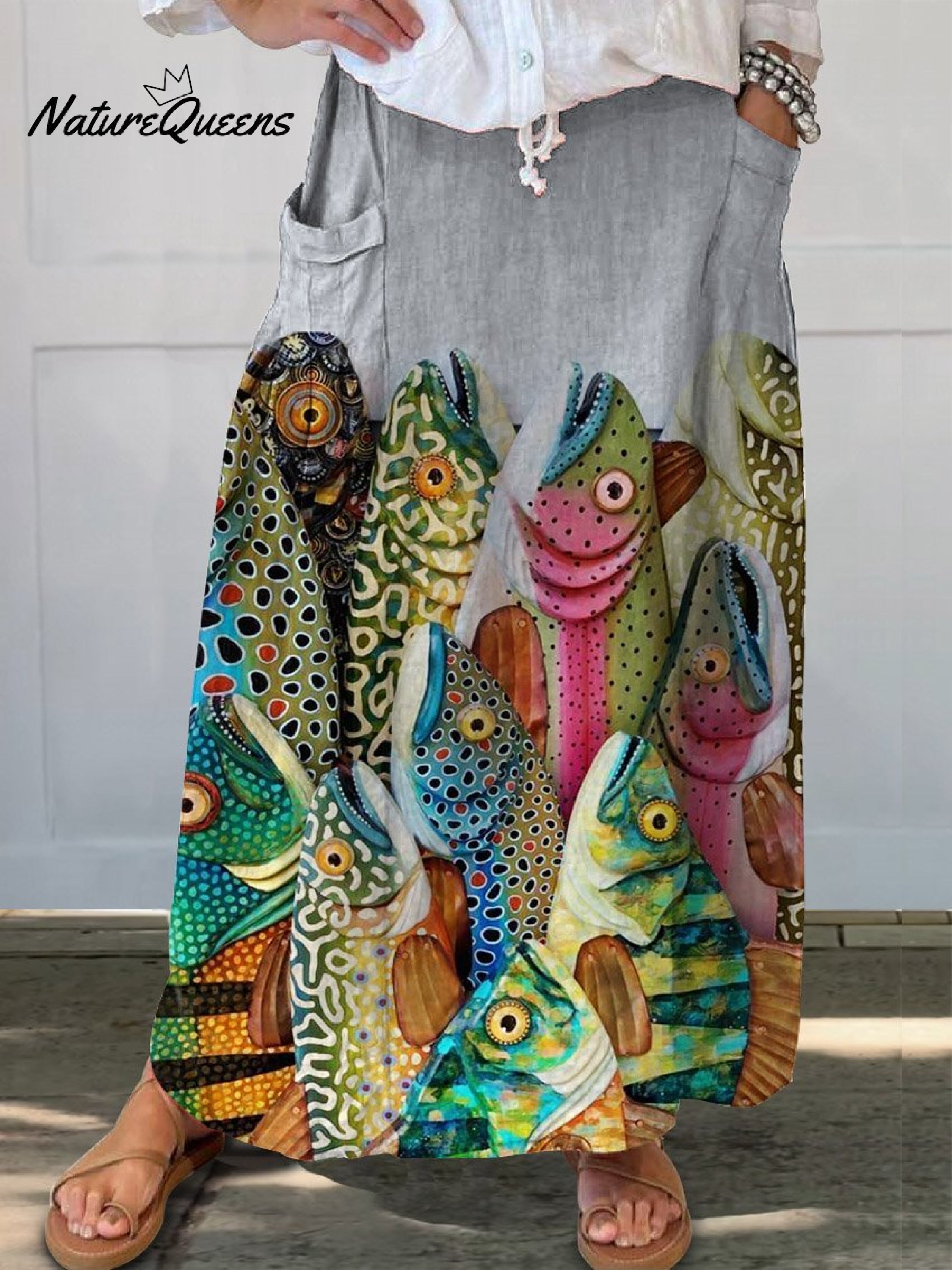 Women's Vintage Funny Fish Art Print Casual Linen Pocket SkirtWomen's Vintage Funny Fish Art Print Casual Linen Pocket Skirt