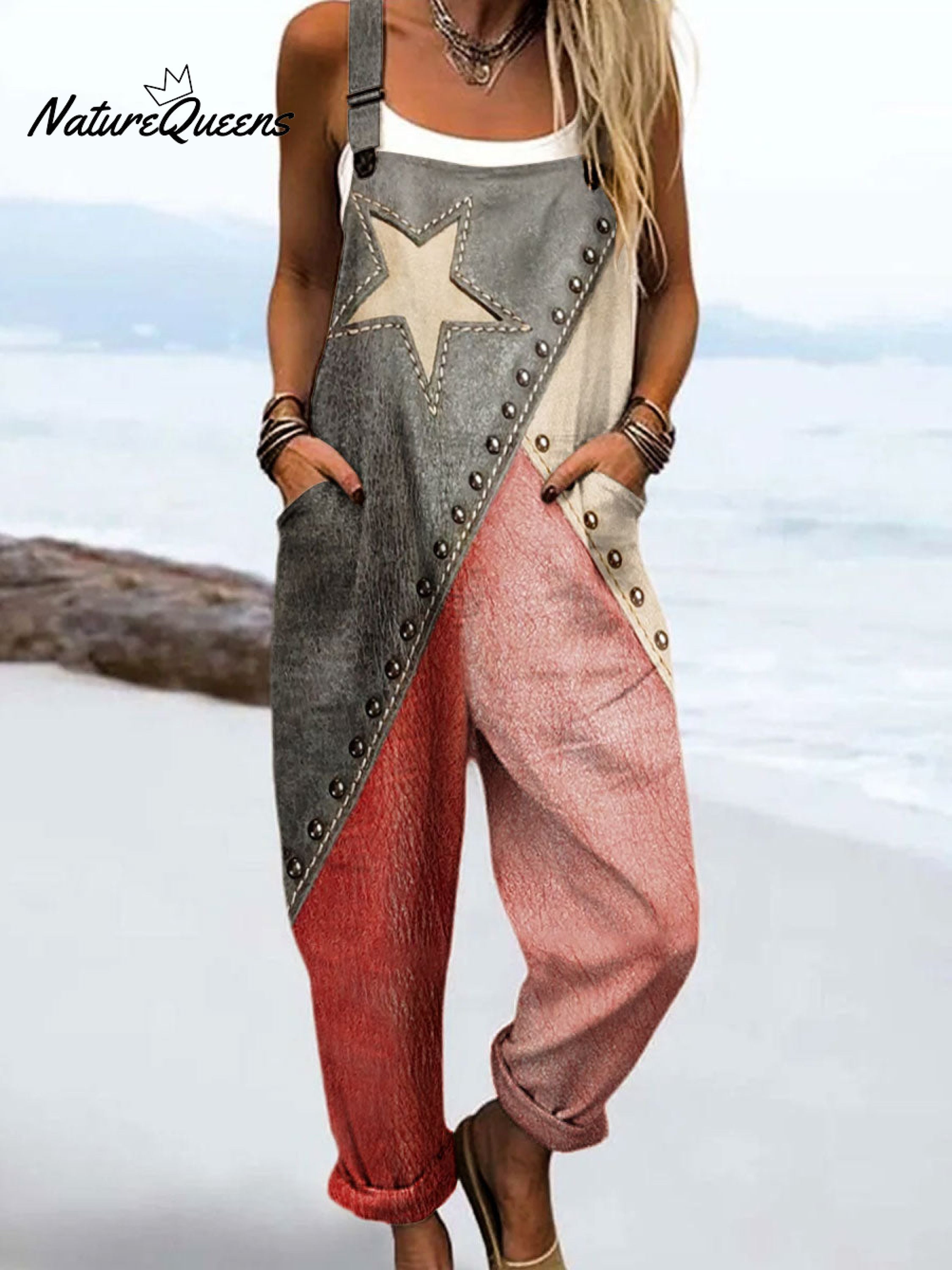 Women's Vintage Independence Day Print Casual 100% Cotton Wide Leg Jumpsuit