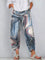 Women's Vintage Nationality Pattern Art Prints Casual Denim Cotton Pants