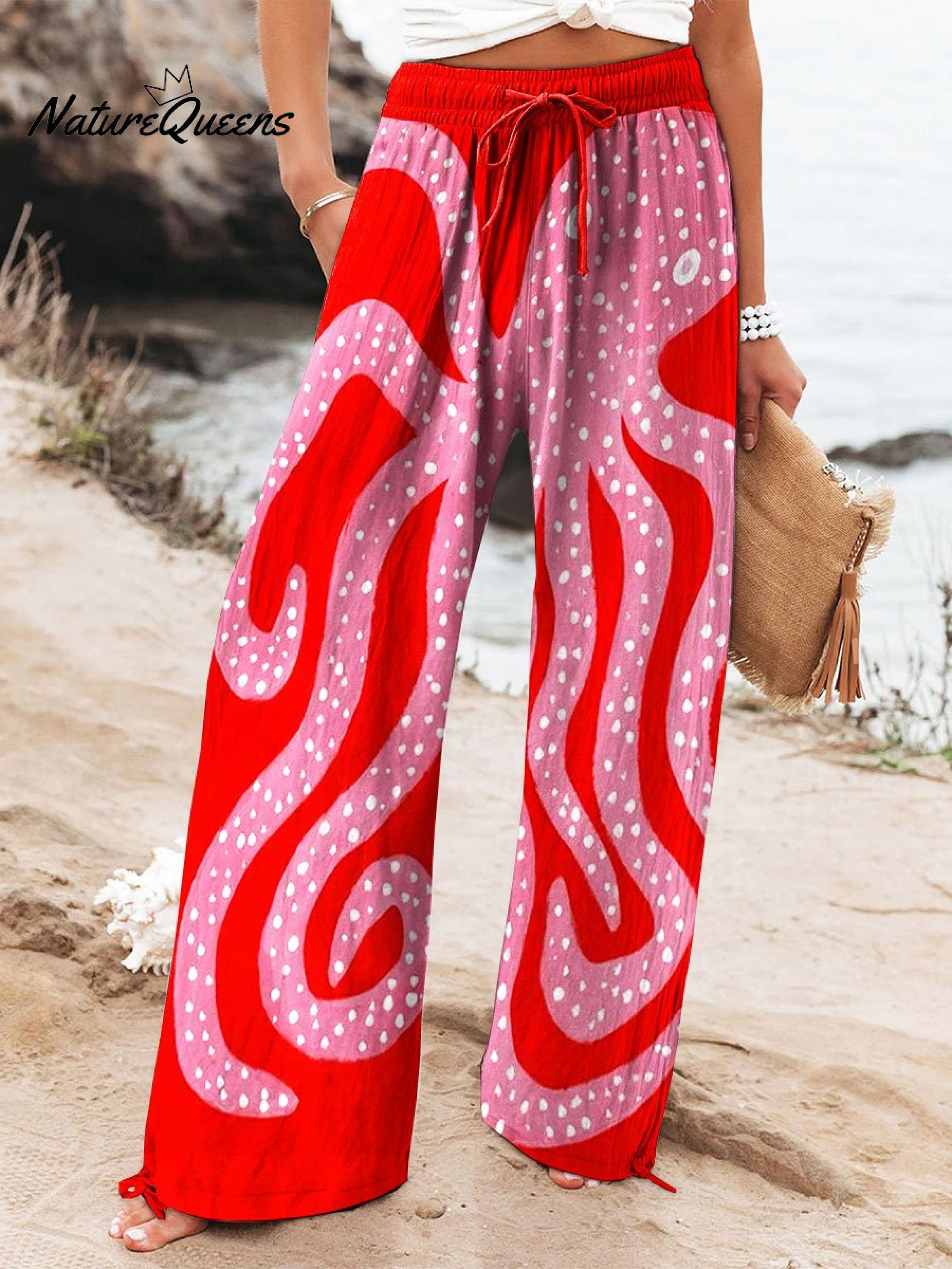 Women's Vintage Octopus Art Print Cotton And Linen Casual Pants