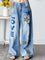 Women's Vintage Pattern Art Print Casual Cotton Denim Jeans