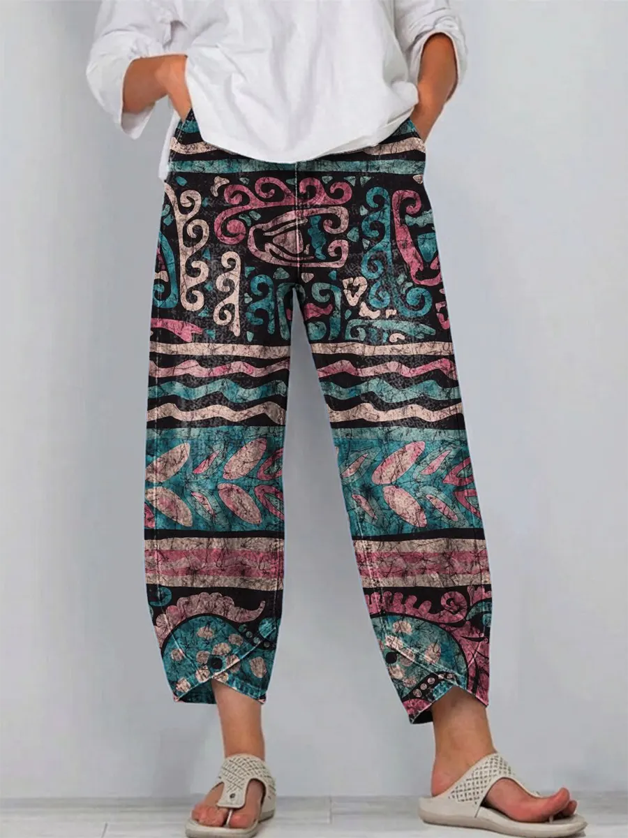 Women's Vintage Pattern Art Print Casual Cotton Denim Pants