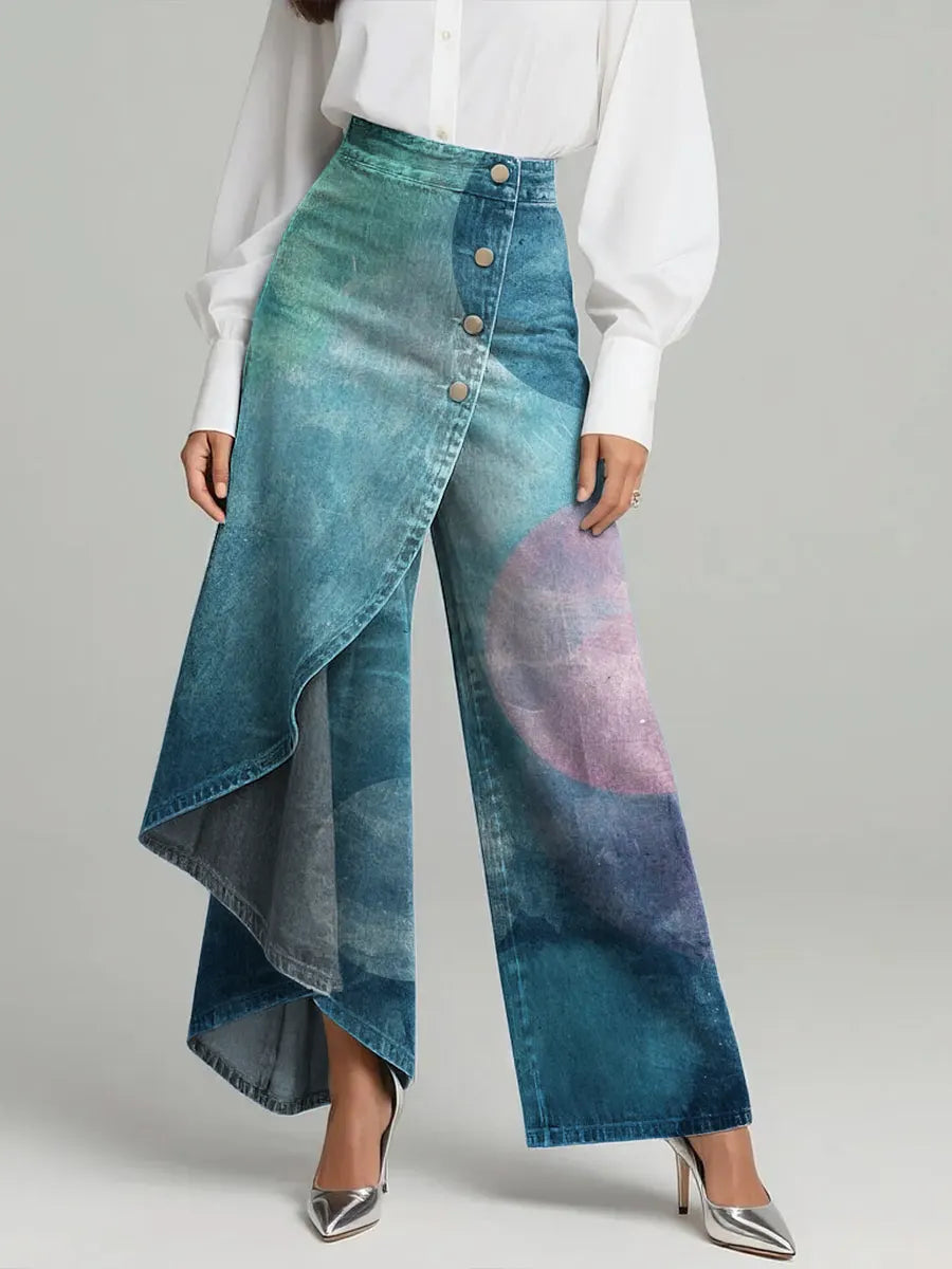 Women's Vintage Pattern Art Print Casual Cotton Denim Pants