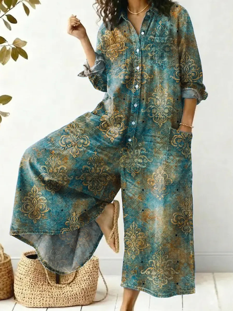 Women's Vintage Pattern Art Print Casual Cotton Jumpsuit