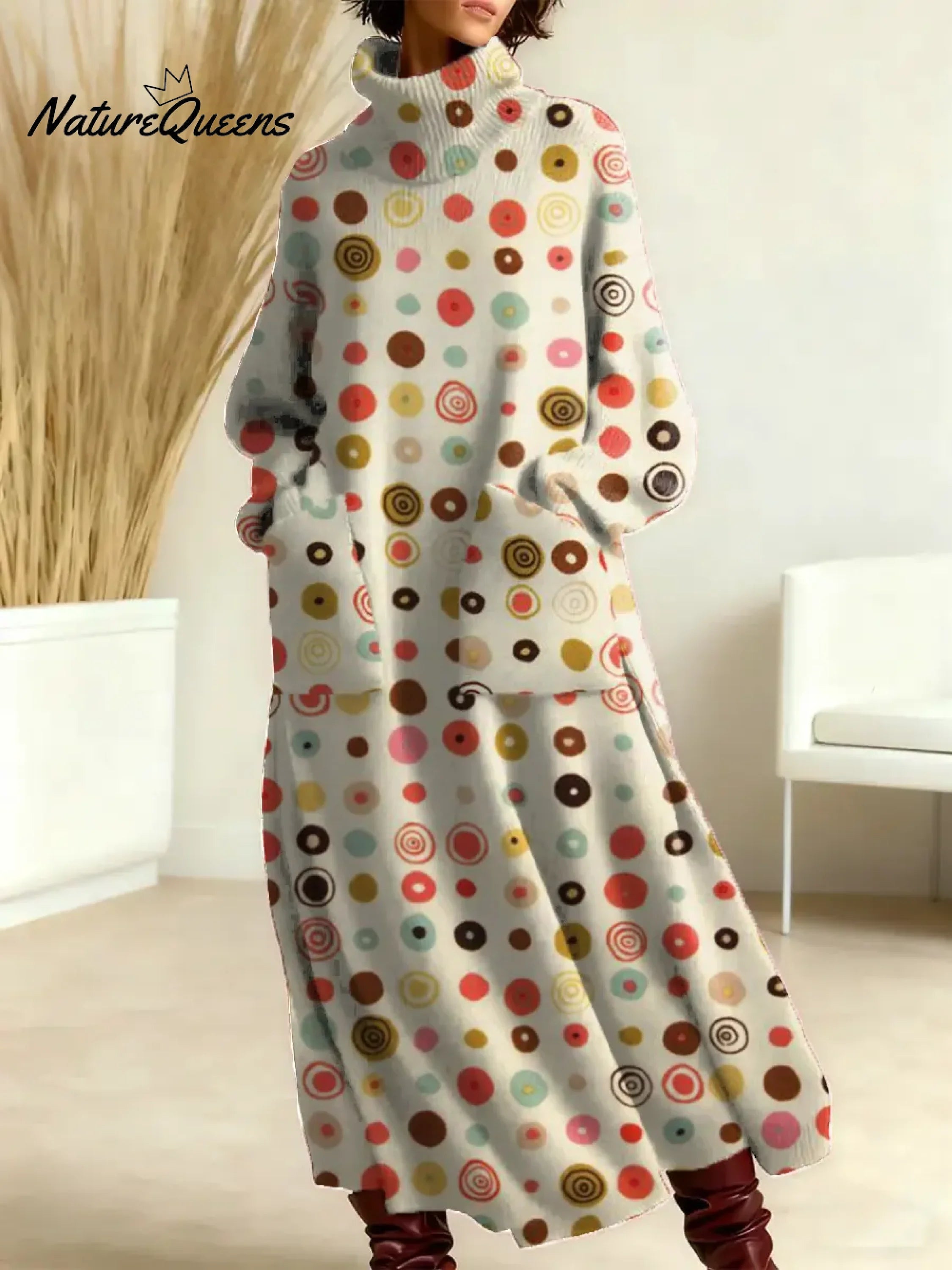 Women's Vintage Pattern Art Print Casual Cotton Knitted Dress