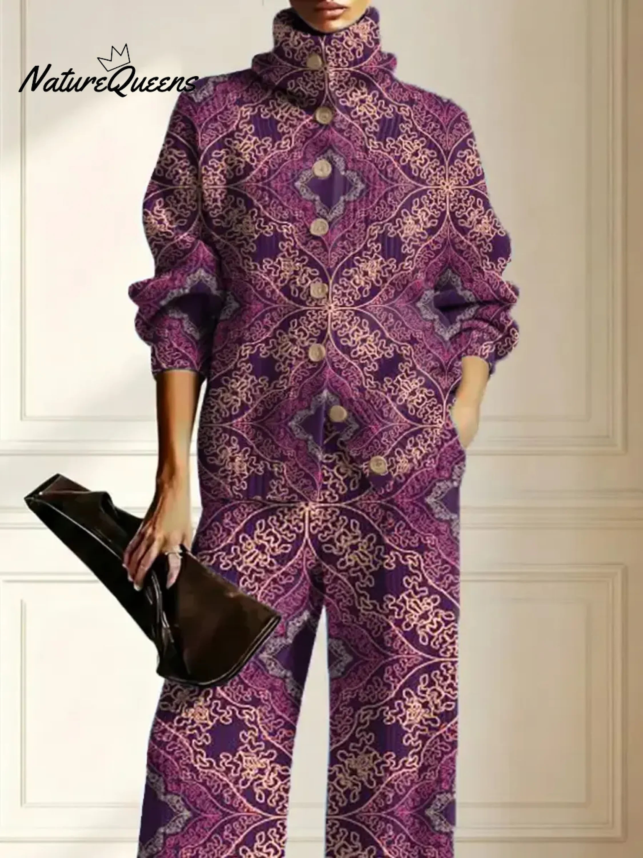Women's Vintage Pattern Art Print Casual Cotton Knitted Suits