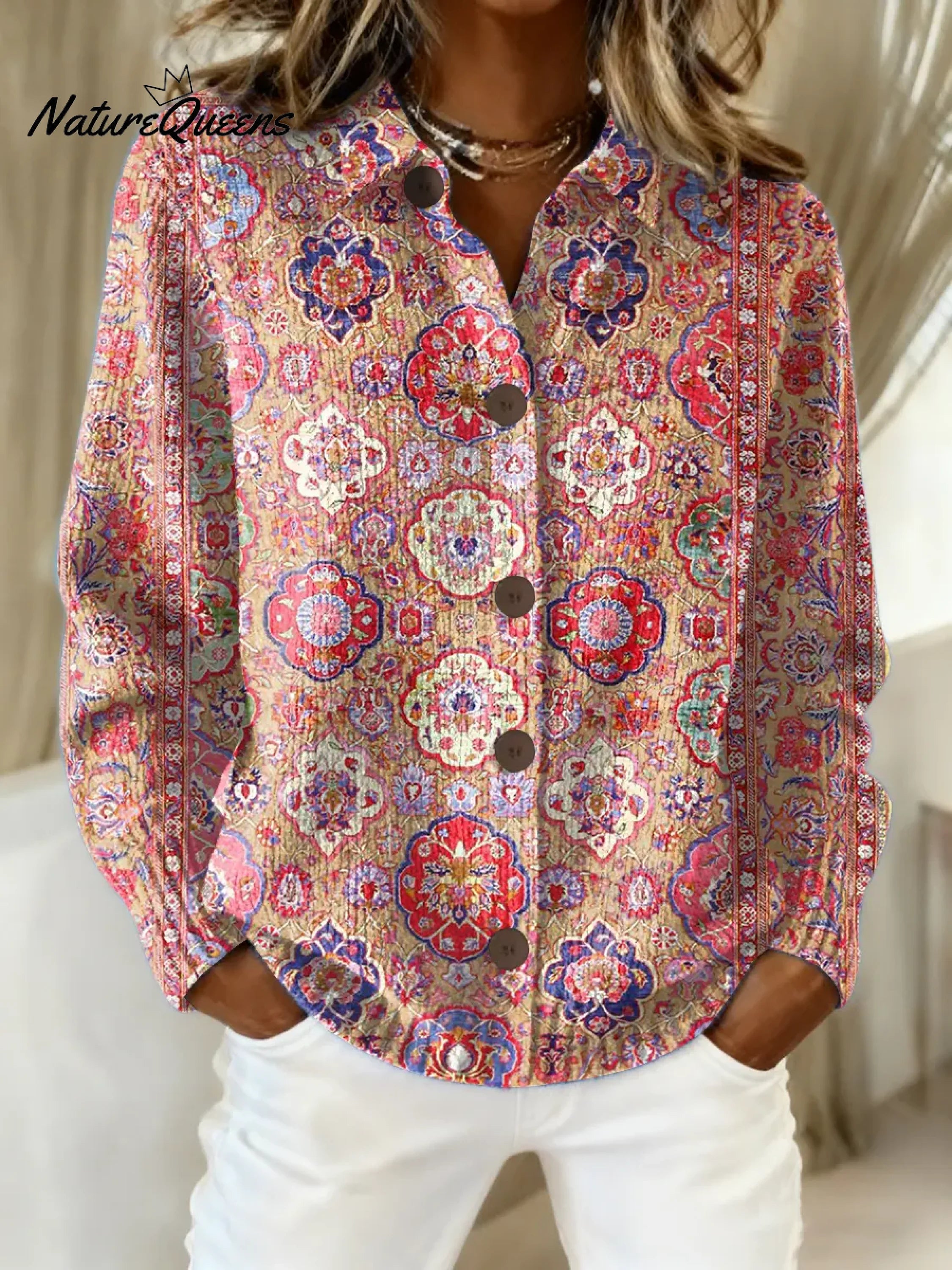 Women's Vintage Pattern Art Print Casual Cotton Knitted Sweater