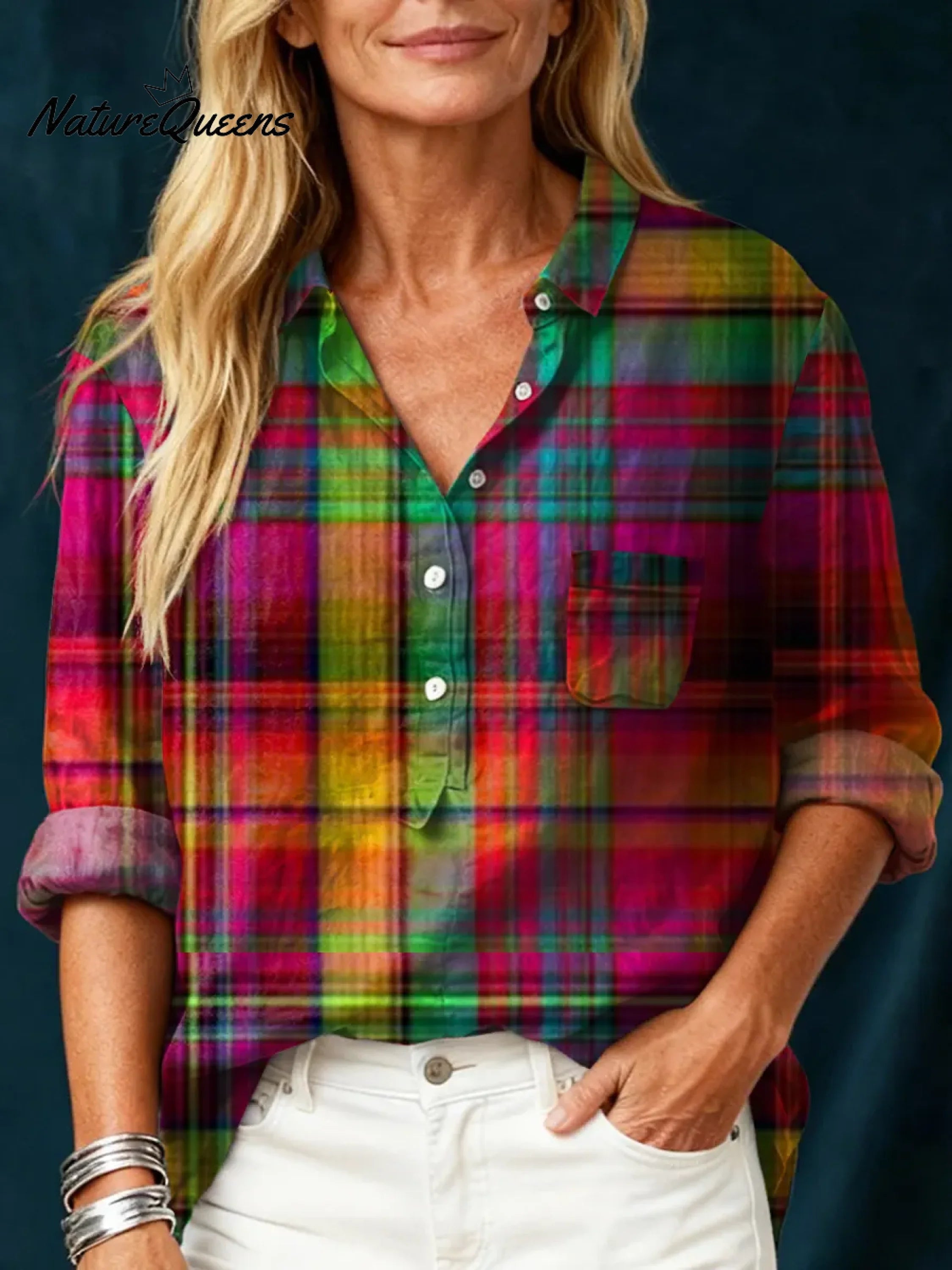 Women's Vintage Plaid Art Print Casual Cotton And Linen Shirt