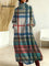 Women's Vintage Plaid Art Print Casual Cotton Knitted Dress