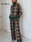 Women's Vintage Plaid Art Print Casual Knitted Cotton Top Pants Suit