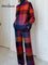 Women's Vintage Plaid Art Print Casual Knitted Cotton Top Pants Suit