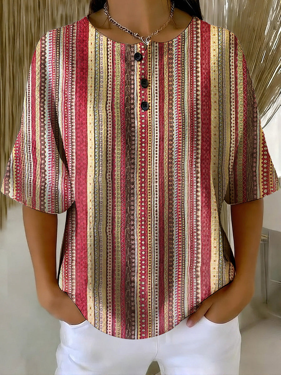Women's Vintage Stripe Pattern Printed Casual Cotton Waffle Knit Sweatshirt