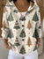 Women's Vintage Winter Christmas Tree Painting Art Print Casual Hooded Button Sweater