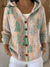 Women's Vintage Winter Christmas Tree Painting Art Print Casual Hooded Button Sweater