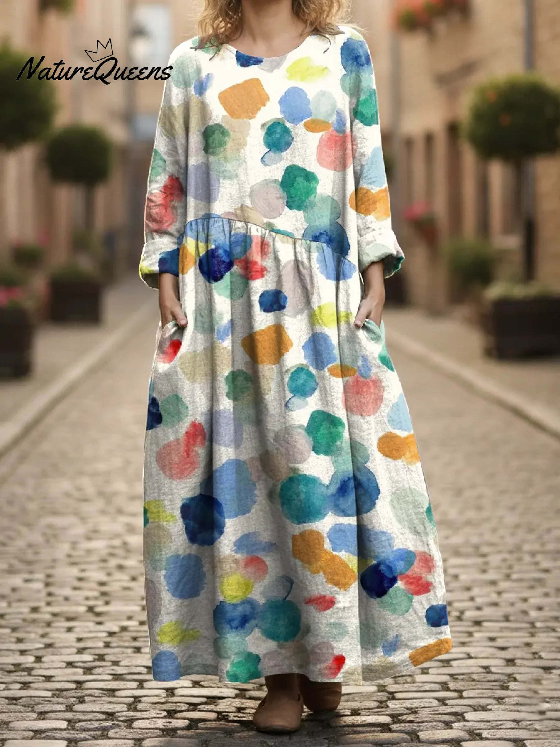 Women's Watercolor Dots Print Pocket Cotton Dress
