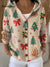 Women's Winter Christmas Gift Painting Art Print Casual Hooded Button Sweater